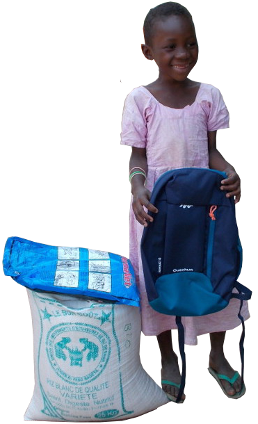 Chaque enfant parrainé a reçu sa dotation annuelle composée de fournitures scolaires (sac d'écolier, trousse, crayons, cahiers), des frais de scolarité, d'un sac de riz, d'une moustiquaire et d'une lampe solaire.